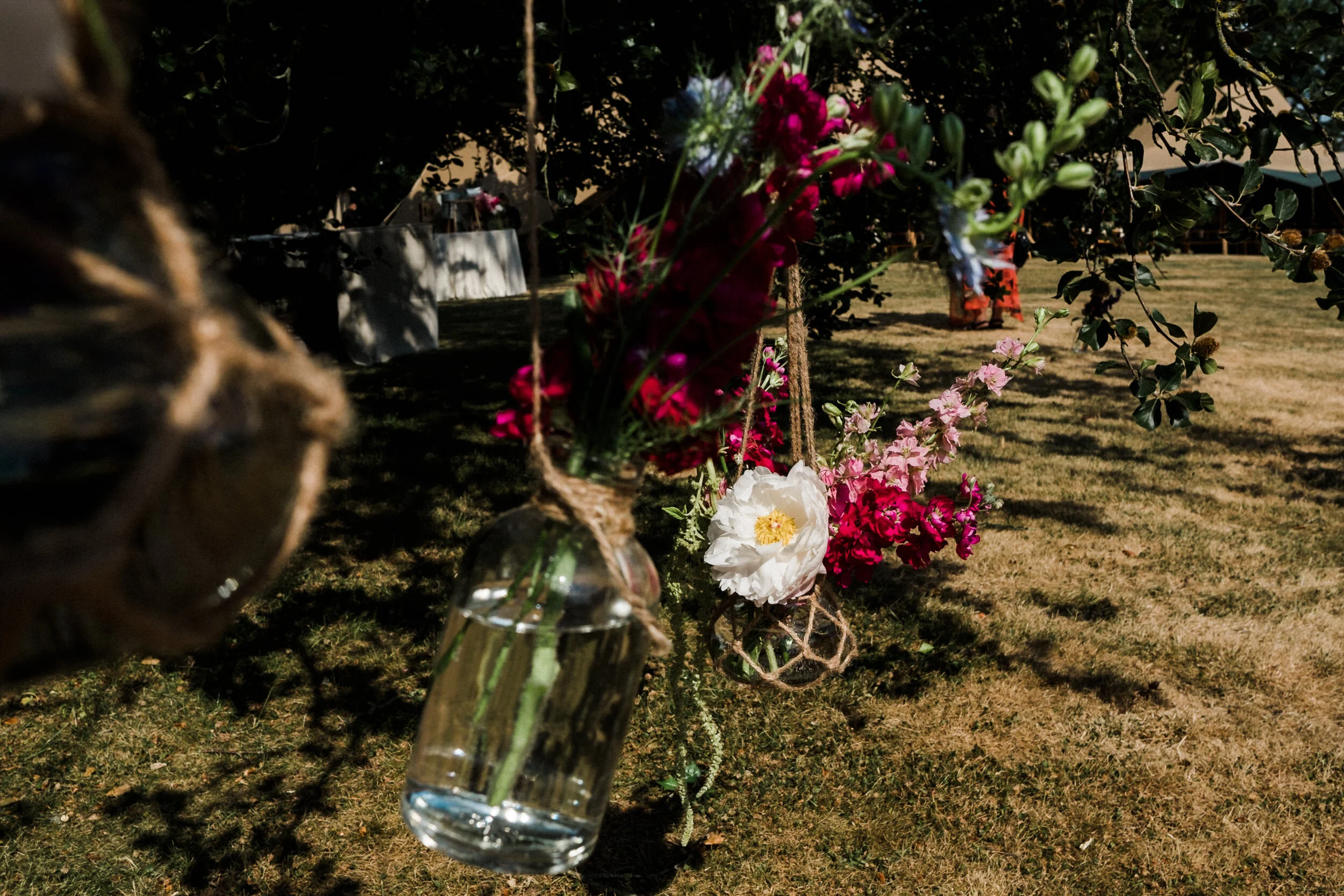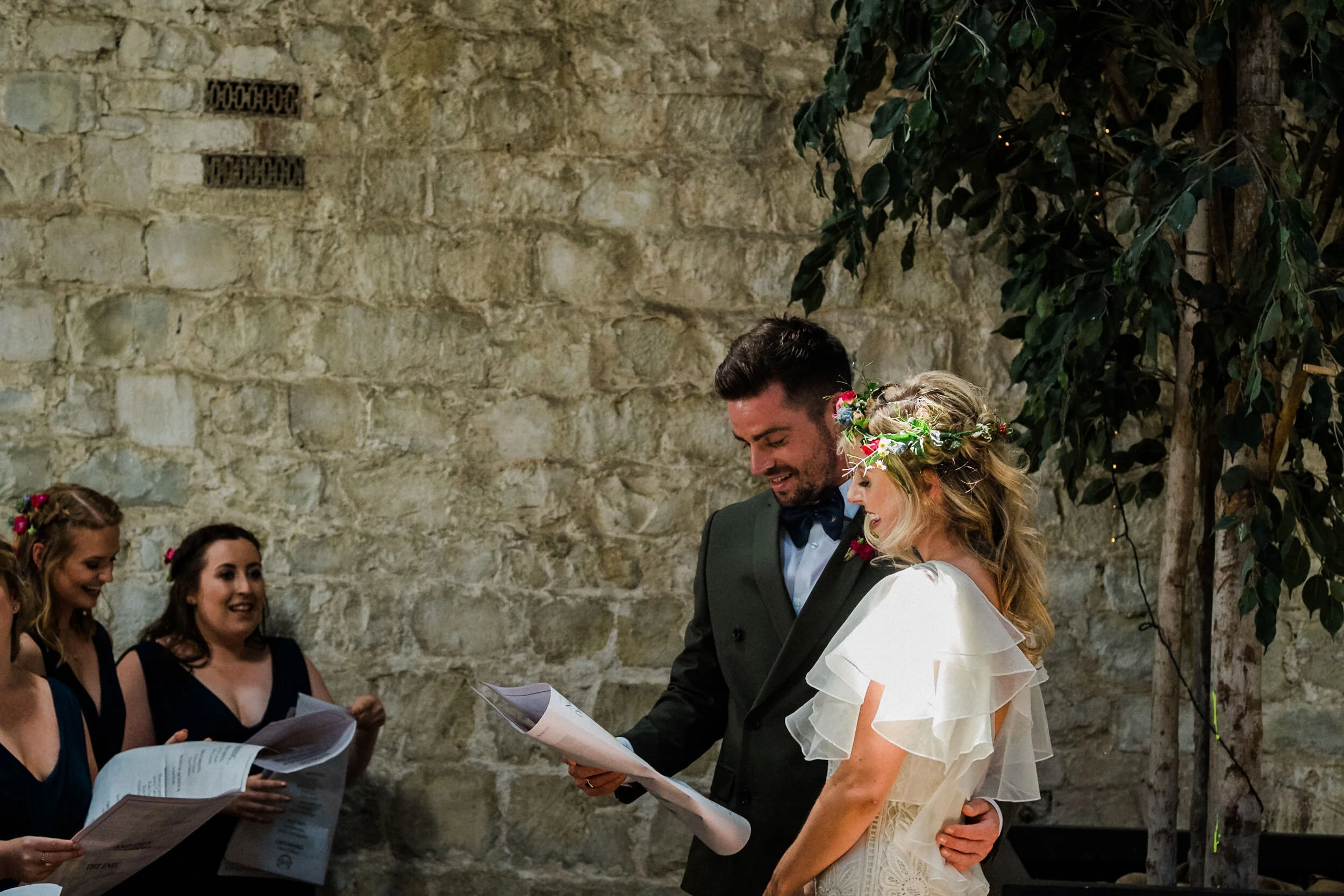 Alex and Niamh’s beautiful bohemian luxury wedding was not short of tranquillity and happiness, a truly relaxed and creative detail-driven celebration, from the gorgeous country, check floral cotton bunting, the rustic and eclectic country boho styling, including unique and antique glass and stoneware vases, retro scales, vintage wooden crates, milk churns and whimsical glass bottles of brightly coloured flowers hanging from the surrounding trees.