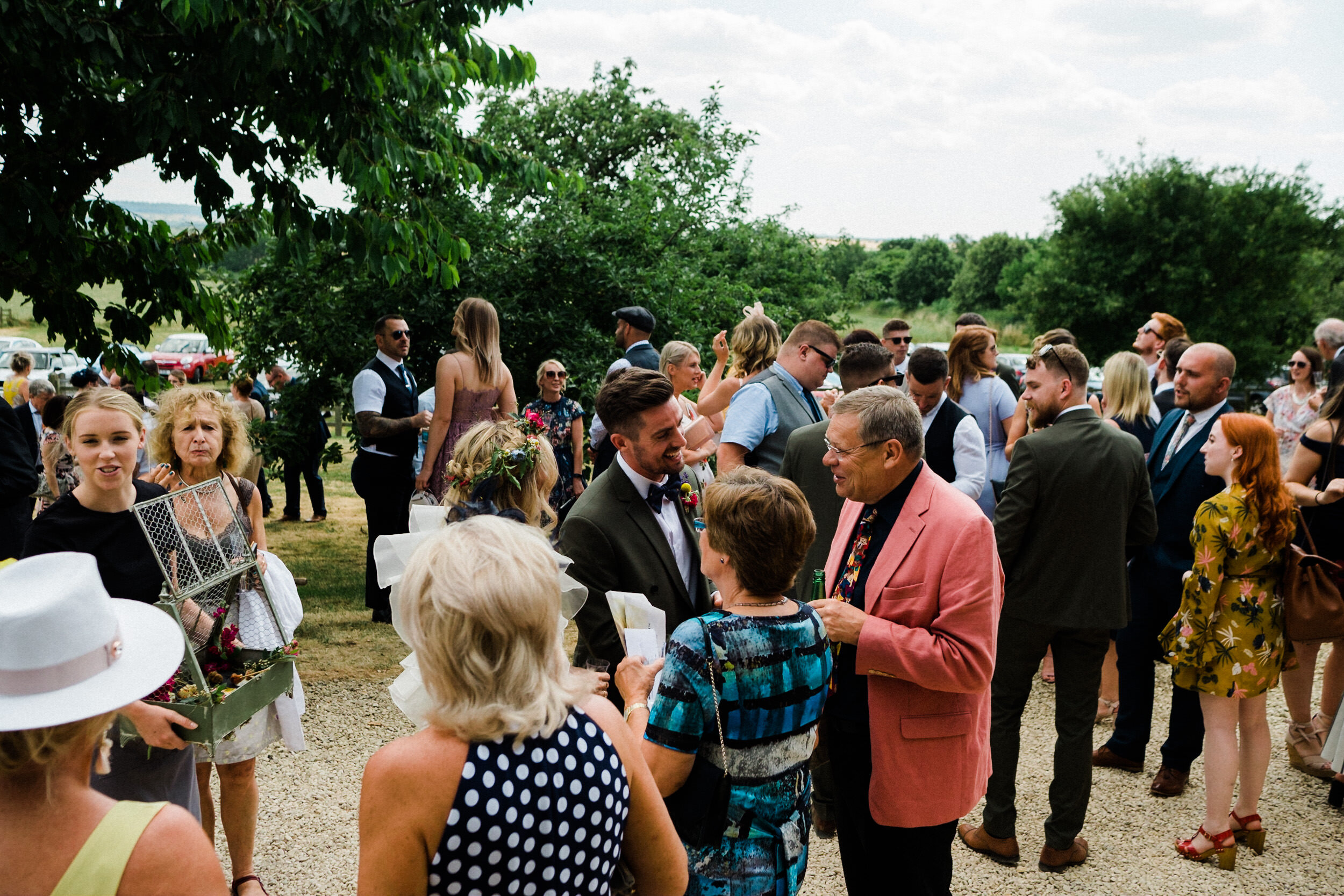 Alex and Niamh made sure the guests were well looked after, there was relaxed seating for everyone outside too including hay bales and wonderful creative rustic wooden painted signs to different areas of the wedding venue Oldberrow House.